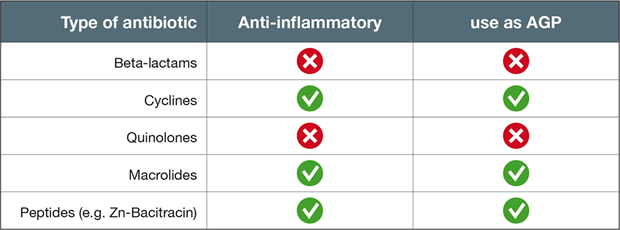 For antibiotics, besides their anti-microbial effect, their connection between growth promotion and anti-inflammation effect was discovered by Prof. Theo Niewold (2007), who further demonstrated that all antibiotics used as AGPs also have anti-inflammatory properties (Fig 1).