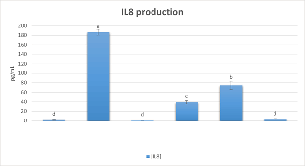 Figure 2. Caco-2 cells IL-8 production under IL-1 stimulation (+ negative and positive controls)