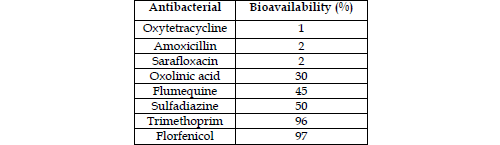 Table 4. Examples of reduced bioavailability for some aquaculture drugs in seawater (Rodgers & Furones, 2009).
