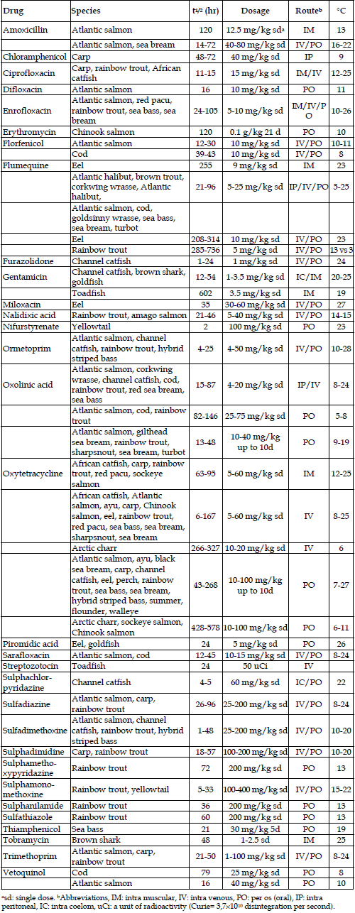Table 5. Half-lives and dosages of antibacterials in fish (Reimschuessel et al., 2005).