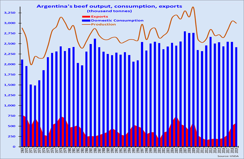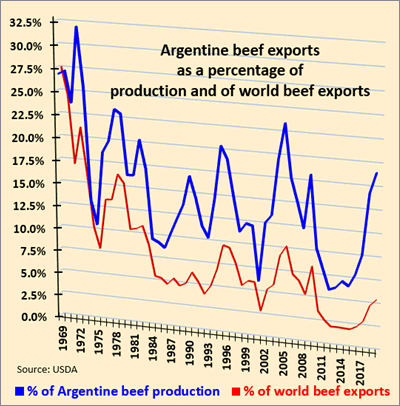 It reminds one of Argentine beef's glory days back in the late 1960s to late 1970s when it would export anywhere from 500,000 to 750,000 tonnes of beef annually and a quarter of its production –but there's a big difference now.