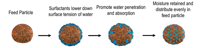 Figure 3. Cross-sectional schematic diagram showing how surfactants improve moisture absorption and retention in the feed.