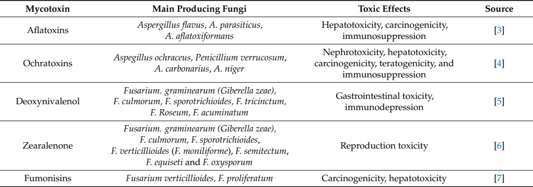 Table 1. Common mycotoxins, their main producers and toxic effects