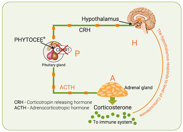 c. PHYTOCEE® controls the corticosterone levels to prevent ill effects of stress in animals (Selvam et al., 2016)