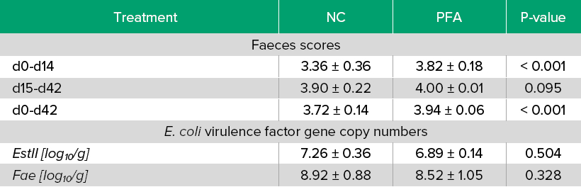 Table 2: Effect of PFA on faecesscores and genes copy numbers of E. coli virulence factors estIIand fae