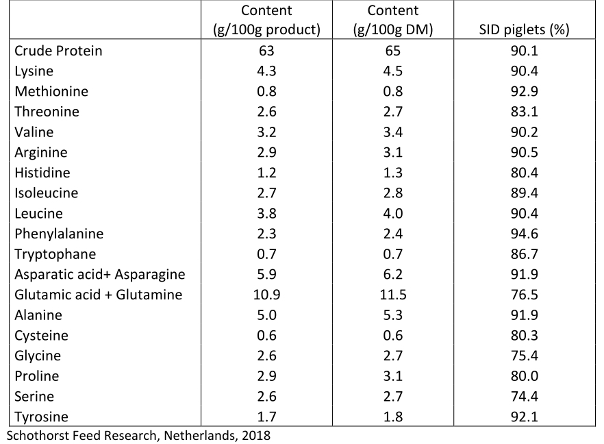 Table 1. Prosaf® standard Ileal digestibility (SID) from piglets of 7.9kgs (5 days post-weaning).