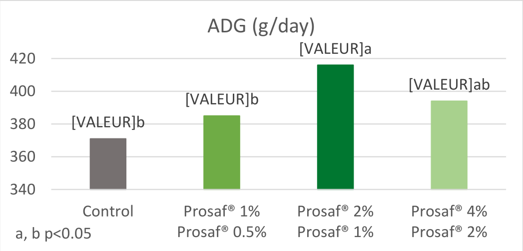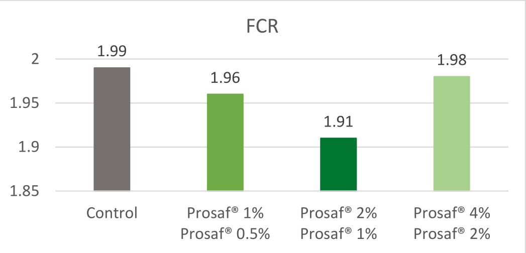Figure 2. Inclusion of 2% Prosaf® in pre-starter followed by 1% Prosaf® in the second diet resulted in the highest performance.