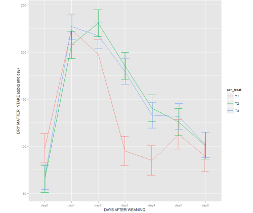 Feed intake was measured for each group and normalised to dry matter intake (DMI), which