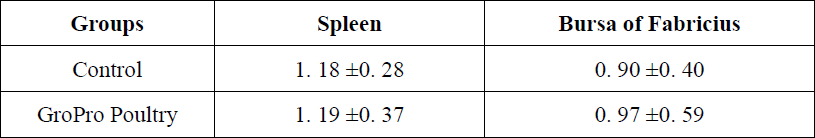 Table 4. Effect of GroPro Poultry on immune organ index in broilers