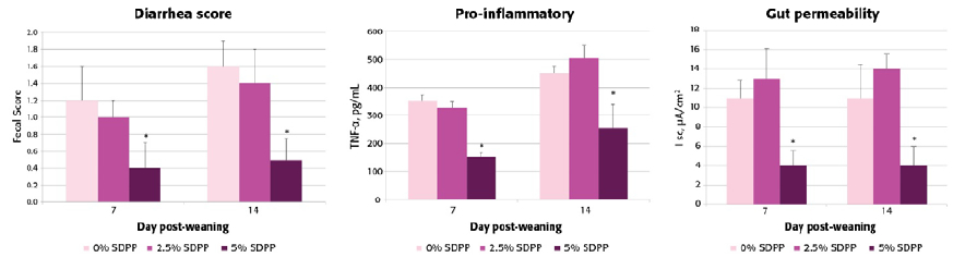 The global adoption of SDPP in nursery diets has been popular for over 30 years. Piglets are weaned when their digestive and immune systems are immature, and the passive immune protection provided by plasma to young pigs is of great benefit. Oxidative stress and inflammation are undesired consequences of the weaning process together with the abrupt changes to intestinal microflora and the physical integrity of the gastro-intestinal tract.