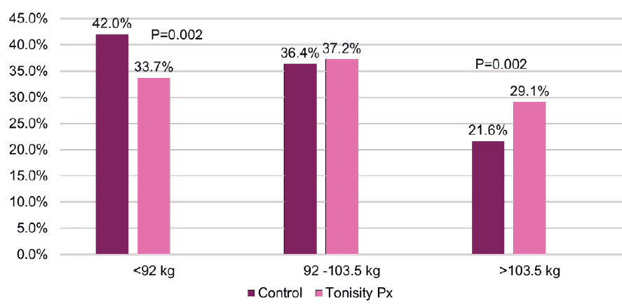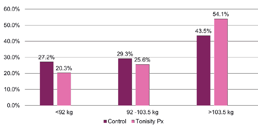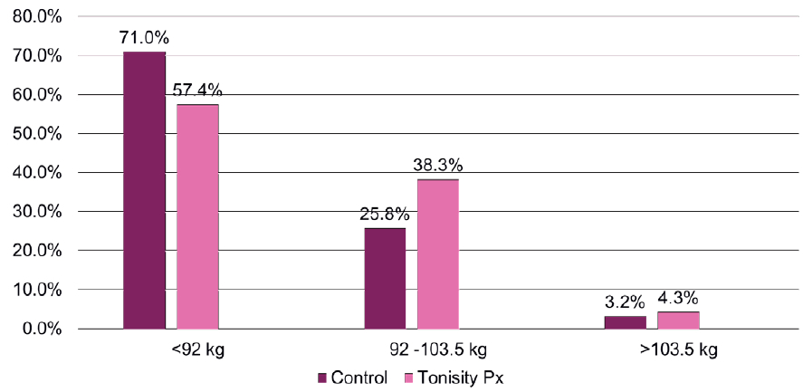 Figure 3: Finishing Weight Population Shift with Tonisity Px