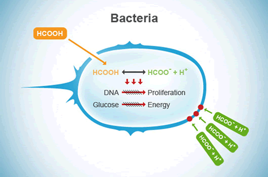 Figure 2. Dual mode of action of formic acid for controlling bacteria