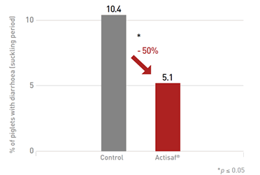 Recent field studies also suggest that the low incidence of diarrhea observed in piglets born to Actisaf® supplemented sows (Figure 4) is due to the passive transfer of immunoglobulins from sow to piglets, which helps optimize piglet gut health.