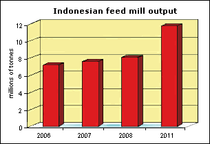 After going into a long post-Suharto era slumber in the late 1990s, Indonesia's feed industry is showing some very definite signs of life. According to the Indonesian Feedmill Association, 2007 Indonesian feed output increased by 5 percent to 7.6 million tonnes. This year, it is expected to rise by an additional 8 percent this year to 8.1 million tonnes.