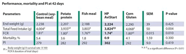 Once again, HP AviStart emerged as the top-performing protein source, demonstrating the lowest FCR and mortality and the highest production index (PI).