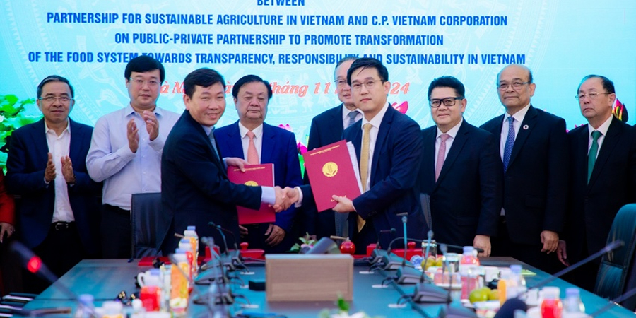 Vietnam's Ministry of Agriculture and Rural Development (MARD), along with CP Group, CP. Vietnam, and the Partnership for Sustainable Agriculture Development Vietnam (PSAV), signed a memorandum of understanding (MoU) on November 1, 2024, which aims to drive the transformation of Vietnam's food system towards greater transparency, responsibility, and sustainability.