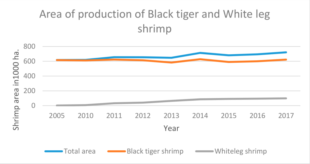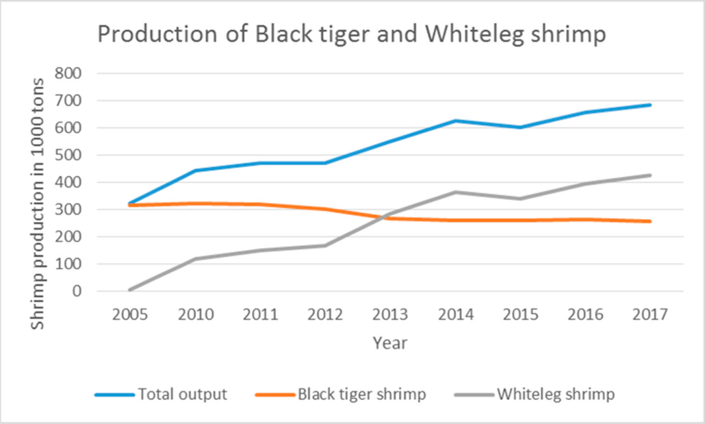 Figure 1. Production of whiteleg and black tiger shrimp of Vietnam, 2005 to 2017.