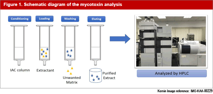 Mold growth and mycotoxin contamination are unpredictable events. Therefore, vigilant surveys need to be constantly conducted. For this purpose, Kemin offer laboratory services to help producers better understand their raw materials. Upon receiving the samples from customers, Kemin's Customer Laboratory Services (CLS) will analyse for mycotoxins using either High-Performance Liquid Chromatography (HPLC) or MYCOSCAN™. MYCOSCAN™is one of the latest innovation by Kemin. It leverages on lateral flow assay technology to quantify mycotoxins in the sample quickly.